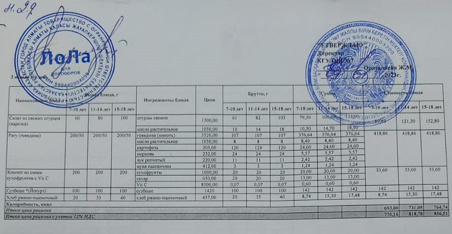 Бюджет қаражаты есебінен орта білім беру ұйымдарында білім алушыларды тегін тамақтандыруды ұйымдастыру үшін төрт апталық ас мәзірі/Четырехнедельное меню блюд для организации бесплатного питания обучающихся в организациях среднего образования за счет бюджетных средств