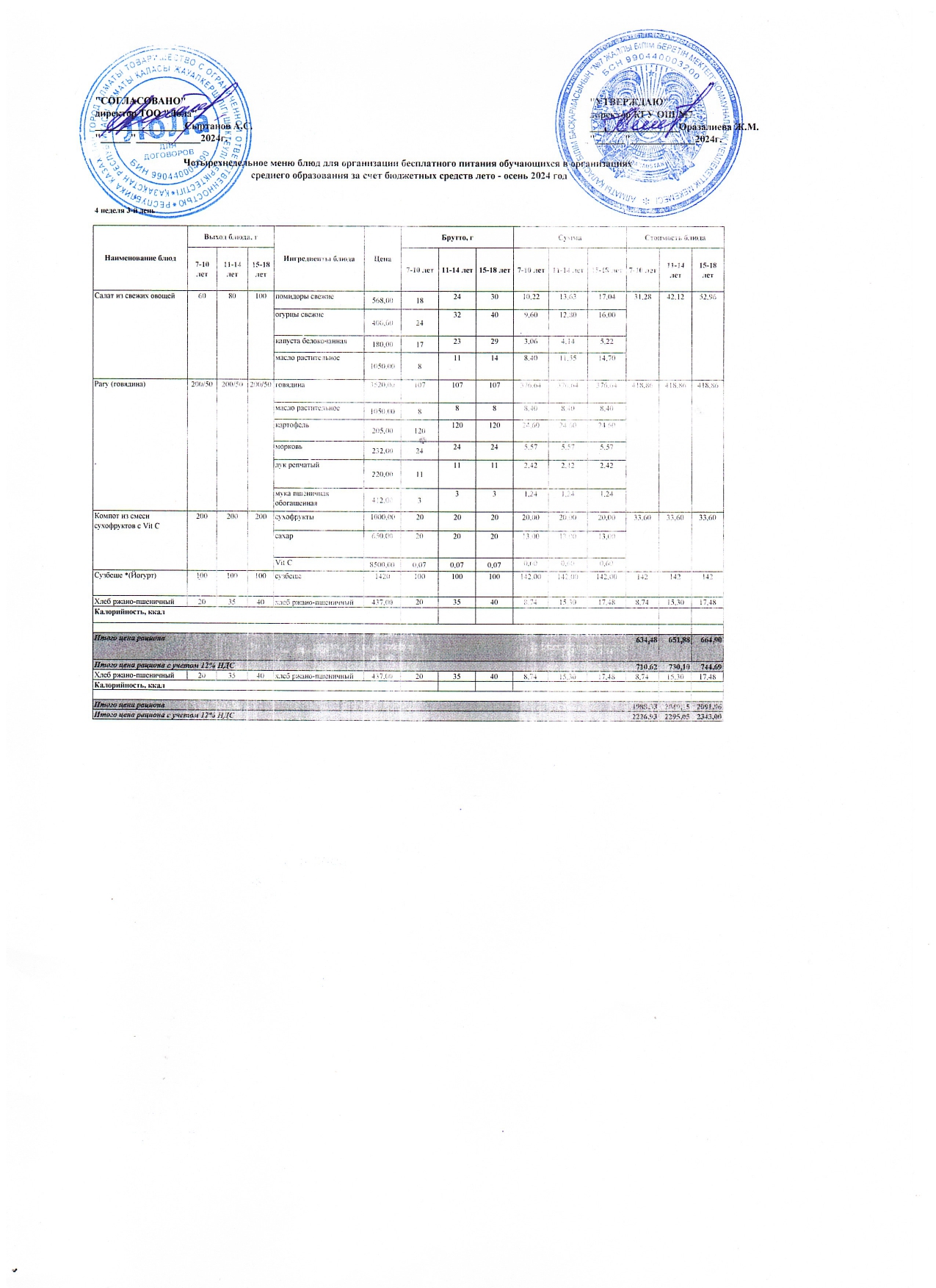 23 қазан 2024 0 1 2 3 4 5 Меню 4 неделя 3 день Четырехнедельное меню блюд для организации бесплатного питания обучающихся в организациях среднего образования за счет бюджетных средств Осы беттің QR-коды:QR-код этой страницы:
