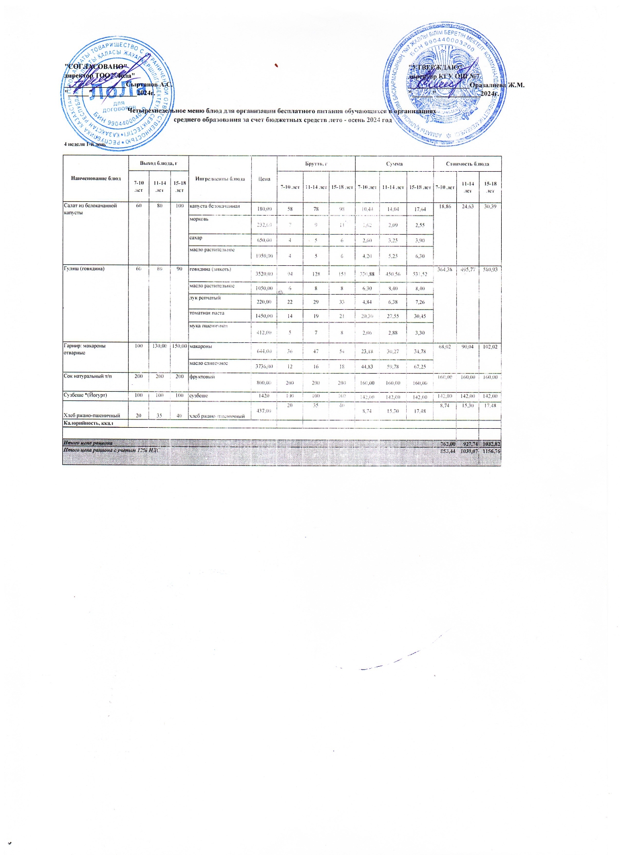 25 қараша 2024 0 1 2 3 4 5 Меню 4 неделя 1 день Четырехнедельное меню блюд для организации бесплатного питания обучающихся в организациях среднего образования за счет бюджетных средств Осы беттің QR-коды:QR-код этой страницы: